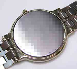 ドルチェですからサファイアガラス。裏蓋に大きく名前が掘ってありますから前面モザイク。