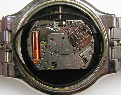 綺麗になったケースにムーブメントを戻して電池格納部をチェックします。