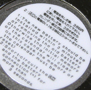 3分以内で電池交換してくださいと。これが電池、リチュウム”CR2412"ですね。