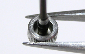 歪みの修整。金属ですから一度曲がれば完全な修整は不可ですが、元々ねじ込み竜頭でも無いですし防水性には影響は無いでしょう。