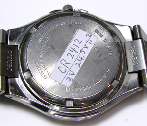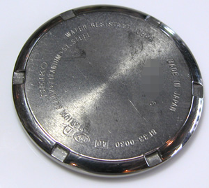 ここから外します。裏蓋はスクリューバック。電池の型番のシールが貼ってあります?