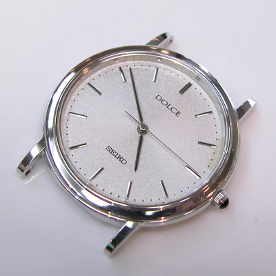 Dolce 5E31-6D30電池交換メンテナンスです。「DOLCE」の名前がSEIKO よりも上になりますがセイコーがメーカー名よりもDOLCEという単語をブランド化しようとした頃の名残ですか。