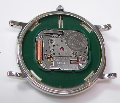 綺麗になったケースにムーブメントを戻して電池格納部をチェックします。