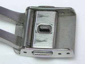 洗浄のためにバンドを取り外します。ラグ部がこういう構造の物は既製品への交換が出来ませんから購入時には慎重に選ぶか、バンドを壊さないように使いましょう。