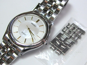 SEIKO Dolce 8J41-6030電池交換メンテナンスです。ベルト調整も依頼ですから”余りコマ”同梱。