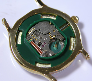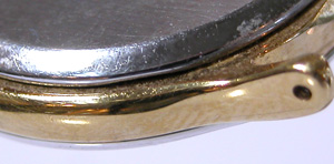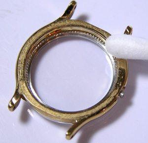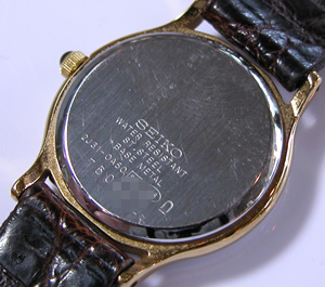 これが開け口ですが、分かりますか。これがムーブメント。ケースと裏蓋の接点が汚れていますが、この程度は普通ですか。これ以上綺麗な腕時計は殆ど使っていない腕時計です。
