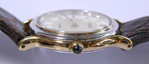 文字盤を戻して出来上がり。ついでに、似合う革ベルトもと言うことで、この型押しワニを取り付けました。