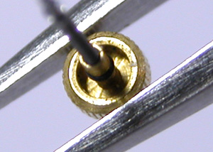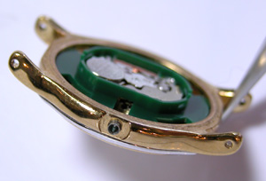 竜頭パイプもチェックします。これが取り出した文字盤&ムーブメント。