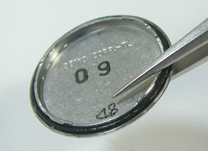 パッキンにシリコン塗布をして裏蓋に戻し。電池を入れて動作確認。