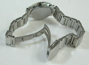 チタン無垢バンドに三つ折れプッシュバックル。