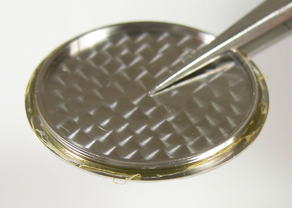 裏蓋周辺の黄色い部分ですが、何かコーキング剤の様なものが塗ってあります。