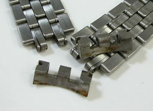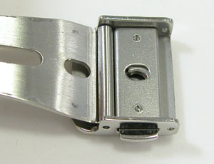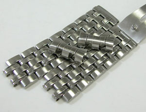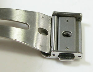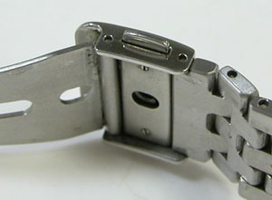 ステンレス無垢バンドに三つ折れプッシュバックル。