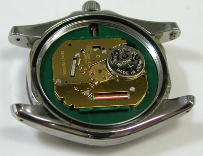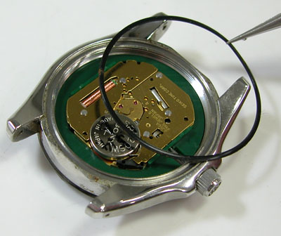 綺麗になったケースにムーブメントを戻して電池格納部をチェックします。