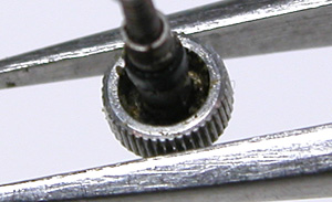 先ずは竜頭を抜きます。竜頭の裏側チェック。