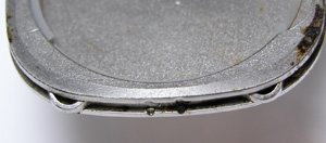 これがムーブメントが入っていた方のケース。この爪で留まっているのですが、錆びてバネが効かないので開かなかった訳です。
