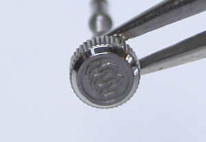 先ずは竜頭の洗浄が出来ました。ツインクォーツマークがくっきり。竜頭裏側もピッカピカ!