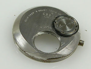 パッキンが効いていた事がよくわかります。かなり硬化しておりますが電池フタのパッキン共に「オールド・クォーツ」はもう部品がありませんから、このまま再利用します。