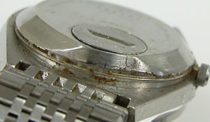 裏蓋を浮かすとサビが目立ちますね・・。