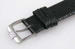 ベゼルは外さなくても良いタイプなので手間は掛からない。遊び革の状態もチェックします。