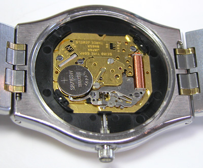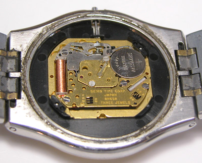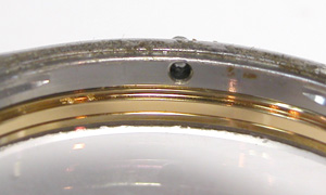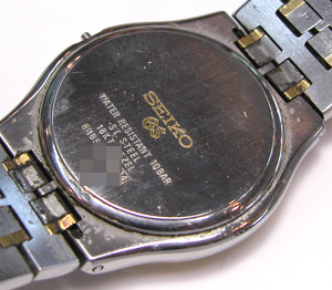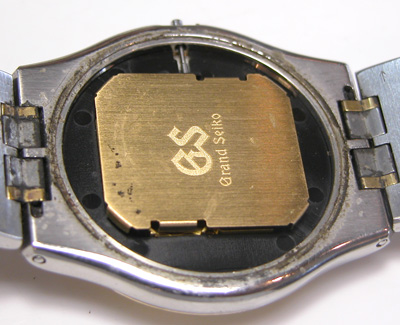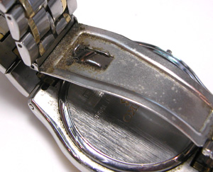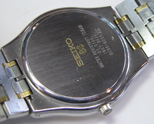 裏蓋の裏側もチェックします。何度も電池交換されているようですが電池交換のみでケースの清掃などをしないと。