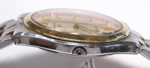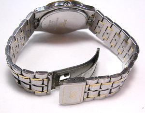 薄いステンレス無垢バンドですが重厚な感じは流石グランド。バックル部分の汚れが凄いですね・・。これは洗浄で綺麗になるでしょう。