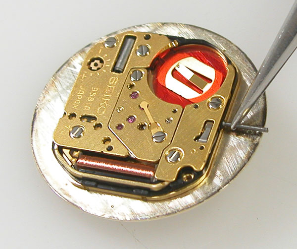 工具で回して時間を合わせてから裏蓋を閉めます。