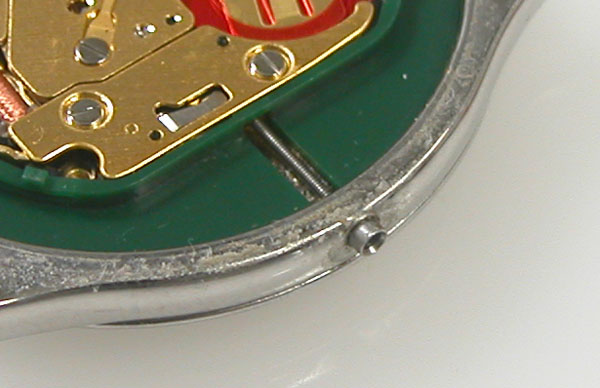 綺麗になったケースにムーブメントを戻して電池格納部をチェックします。