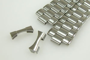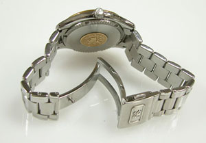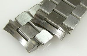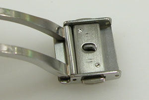 ステンレス無垢バンドに三つ折れプッシュバックル。