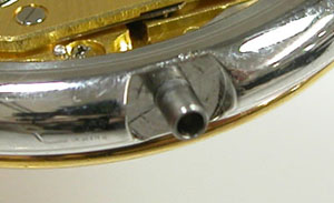 これがムーブメントですが「ムーブメント&文字盤」が裏側から抜けない構造ですから取り出し作業は「文字盤に指紋をつけたり」「針に触れて曲げたり」リスクが高いです。