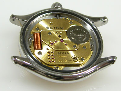 2013.5.11お預かりのGRAND QUARTZ 9F61-0A20電池交換メンテナンスでご依頼ですが、ムーブメント取り出しにリスクがある構造なので今回「電池交換のみ(洗浄なし)1.500円コース」とさせて頂くことに。