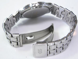 ステンレス無垢バンドに三つ折れバックル。