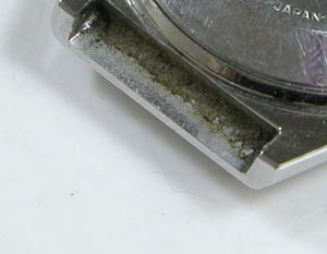 綺麗になったケースにムーブメントを戻して電池格納部をチェックします。