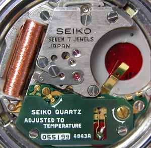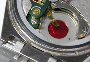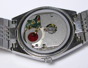 これがキャリバー。むむむ・・・電池蓋の位置が間違っていますね(;^_^A。これでも問題はないですが。