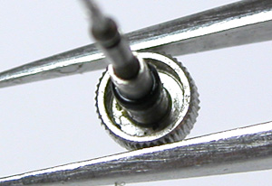 バネ棒が錆びています。まだまだ使えるバネ棒ですが交換しますか。竜頭の洗浄完了。