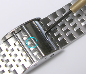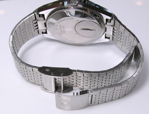 これがセイコーオリジナル”スライドバックル”。裏蓋の爪も普通のスライドは2箇所ですが1箇所。