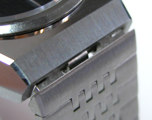 これが一体式に見えるバンドのケースとの隙間ですが。バネ棒を交換したが為に隙間が出来ます。これは何故かといえば。