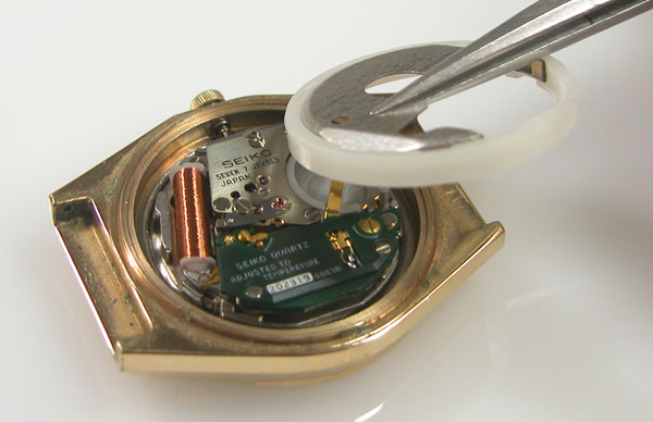 裏蓋を開けるとスペーサーがムーブメントを覆っています。