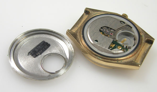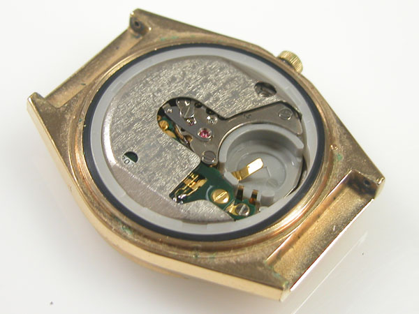 綺麗になったケースにムーブメントを戻して電池格納部をチェックします。