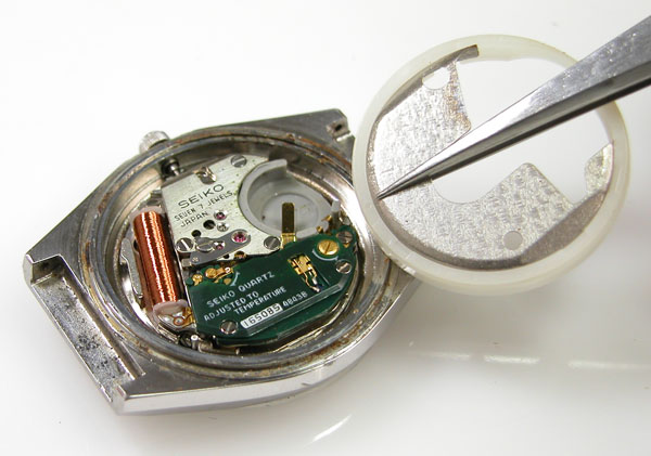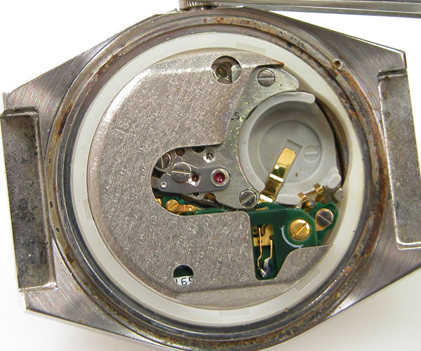 綺麗になったケースにムーブメントを戻して電池格納部をチェックします。