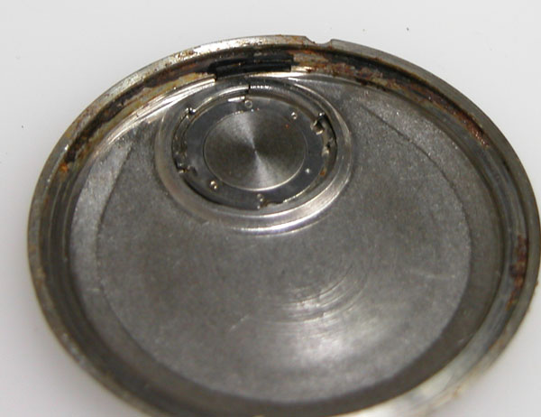 裏蓋がわのサビをチェックして。これは削り落とすしか無いでしょう。