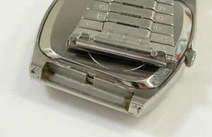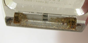 ラグ部の状態もチェックします。ラグ部が片側だけ汚れていると言う事は前回、お客様が持ち込まれた時計屋さんとは反対側から開けた様です。