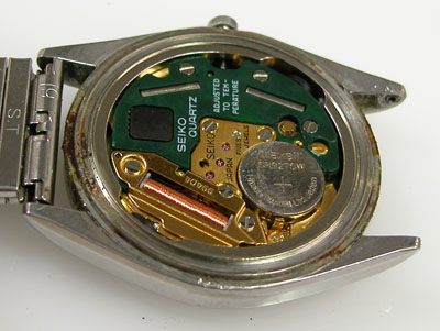綺麗になったケースにムーブメントを戻して電池格納部をチェックします。