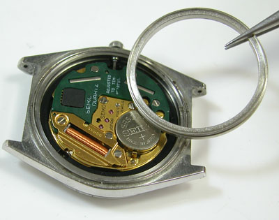 綺麗になったケースにムーブメントを戻して電池格納部をチェックします。