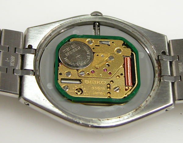 綺麗になったケースにムーブメントを戻して電池格納部をチェックします。