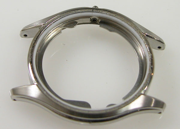 先ずはベゼル&ガラスを外します。白いプラスチック・パッキンがケース内に残っておりますが、これが「洗浄は出来ないかも?」の理由です。