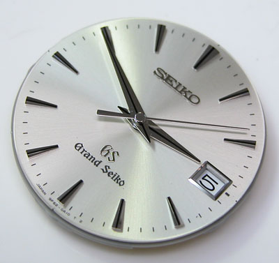 これが取り出した文字盤&ムーブメントですが写真では普通の白い”おじさんウォッチ”に見えますが現物はグランドのオーラが出ている文字盤。
