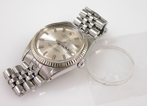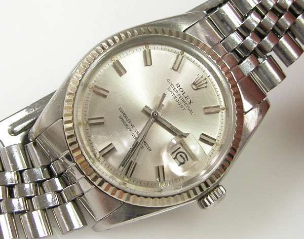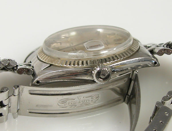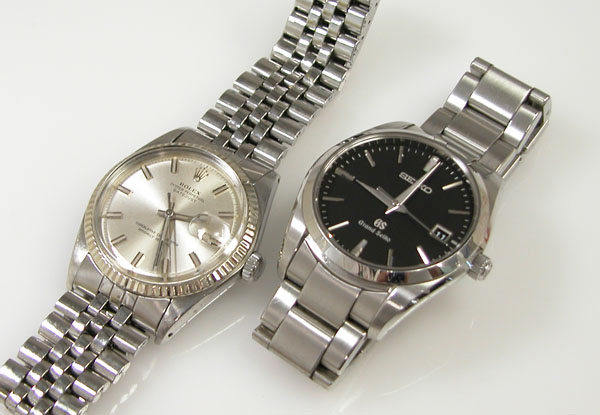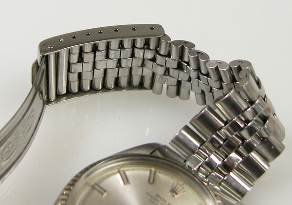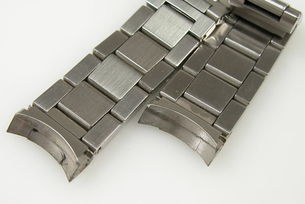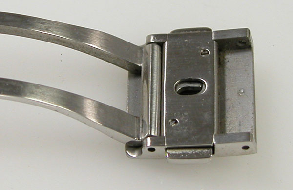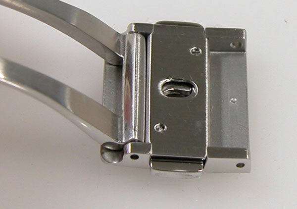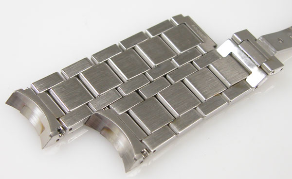 ステンレス無垢バンドに三つ折れプッシュバックル。