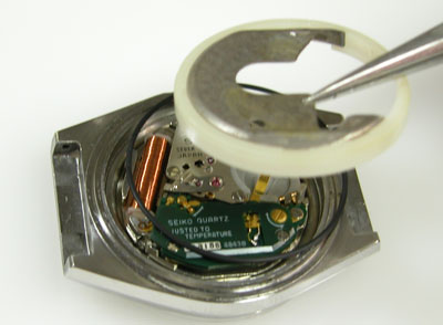 綺麗になったケースにムーブメントを戻して電池格納部をチェックします。
