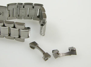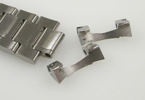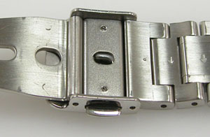 ステンレス無垢バンドに三つ折れプッシュバックル。
