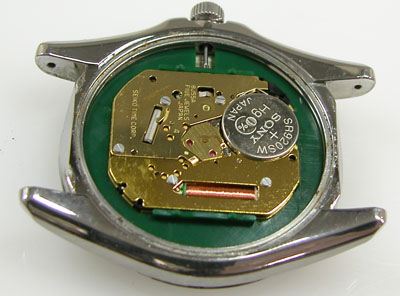 綺麗になったケースにムーブメントを戻して電池格納部をチェックします。